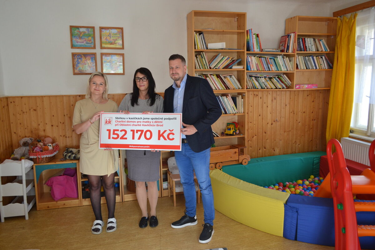 Oblastní charita Havlíčkův Brod s vděčností děkuje společnosti KiK, která věnovala 152 170 Kč na investiční projekt Azylový dům u sv. Kateřiny. Tento nový dům nabídne maminkám s dětmi v krizové situaci bezpečné zázemí, odbornou pomoc a šanci začít znovu.