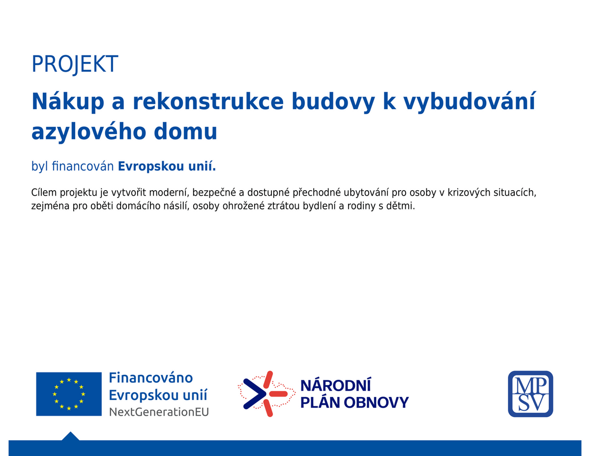 Realizací projektu dojde k navýšení aktuální kapacity podpořené sociální služby – azylový dům a ke zkvalitnění poskytované péče. Přeměna objektu zahrnuje kompletní rekonstrukci, včetně stavebních úprav jako zateplení budovy, přidání vikýřů a instalace výtahu bez strojovny. Díky těmto úpravám bude objekt splňovat požadavky na bezbariérový přístup, což umožní i osobám s omezenou mobilitou využívat služby azylového domu. Navíc, nové dispoziční řešení a modernizace interiérů zajistí důstojné podmínky pro pobyt klientů, čímž dojde k výraznému zlepšení komfortu a kvality poskytované péče.