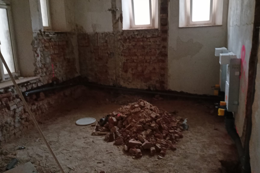 Rekonstrukce je v plném proudu – podlahy už zmizely, odkryla se skrytá zákoutí domu a pracuje se nepřetržitě na tom, aby zde mohlo vzniknout prostředí, kde lidé najdou pochopení a potřebnou oporu. Každý den se stará budova mění a přibližuje své nové roli.