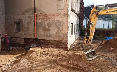 31. 10. 2025 V objektu U Trojice se pokračuje v důležitých stavebních pracích. Dokončuje se odizolování budovy po celém obvodu, aplikace nopové fólie a instalace uzemnění hromosvodů. Uvnitř objektu byly zahájeny práce na kanalizačních svodech a montáž splachovacích jednotek pro WC, které zajistí funkční vybavení interiéru.