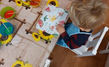 Seznamování s angličtinou probíhá formou hry, opakování a přirozeným začleněním do každodenních rituálů. Zaměřujeme se především na pasivní porozumění a osvojování zvuků, nikoli na učení nazpaměť. Důležitá je pravidelnost, krátké a zábavné aktivity a pozitivní prostředí, které vytváří pevné základy pro pozdější aktivní mluvení. Děti se učí pojmenovávat barvy, zvířátka a předměty kolem sebe – věci jim ukazujeme a pojmenováváme je v angličtině stejně jako v češtině.