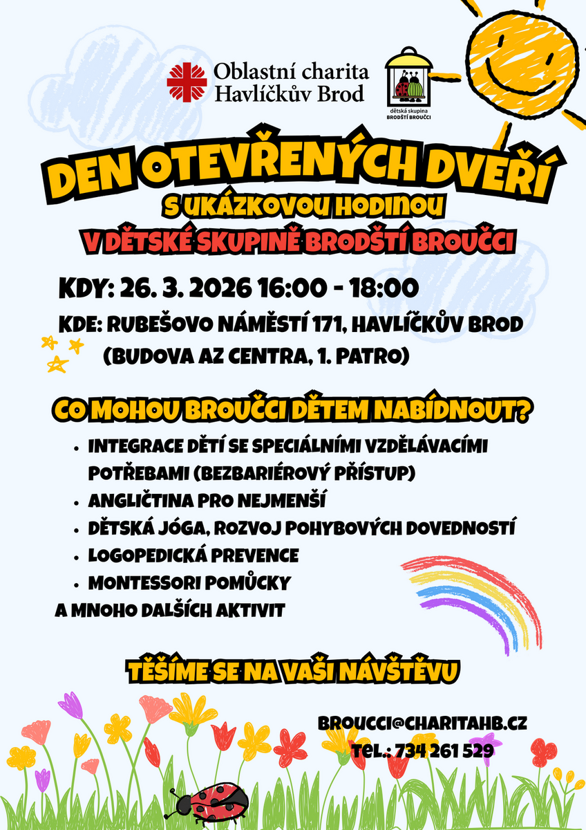 Dětská skupina Brodští broučci je poskytována s pravidelným celodenním provozem péče o děti od dvou let do zahájení povinné školní docházky.
